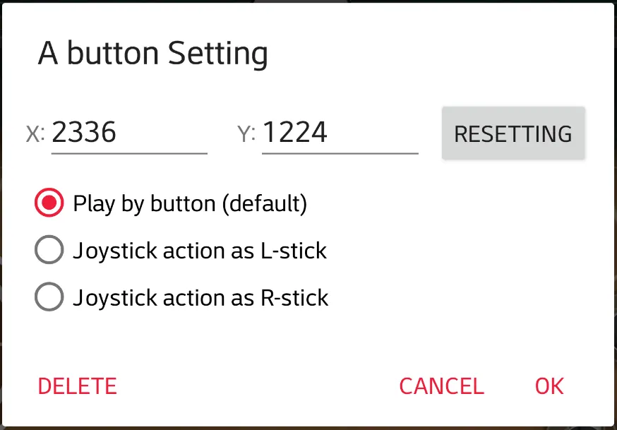 Geben Sie den X-, Y-Wert ein, um die Schaltfläche genau zu positionieren und den Spielbildschirm genauer zu steuern. Reset geht auf Anfangswert