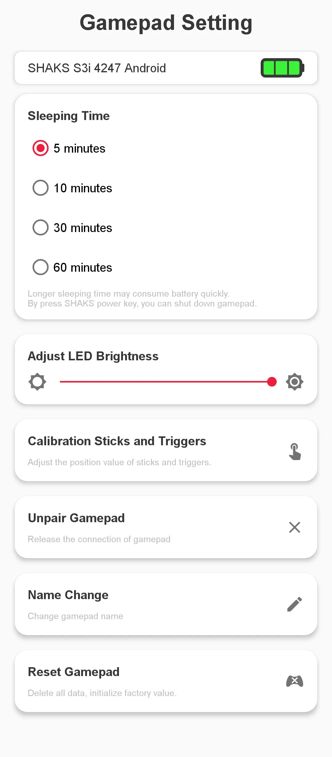 Mit unserer eigenen App SHAKS GameHub geht das S5b noch einen Schritt weiter und ermöglicht es Ihnen, AAA-Touch-Spiele mit einem Controller in Konsolenqualität zu spielen, z. B. Garena Free Fire, CoD, PUBG, Genshin Impact, Roblox, Slamdunk usw.