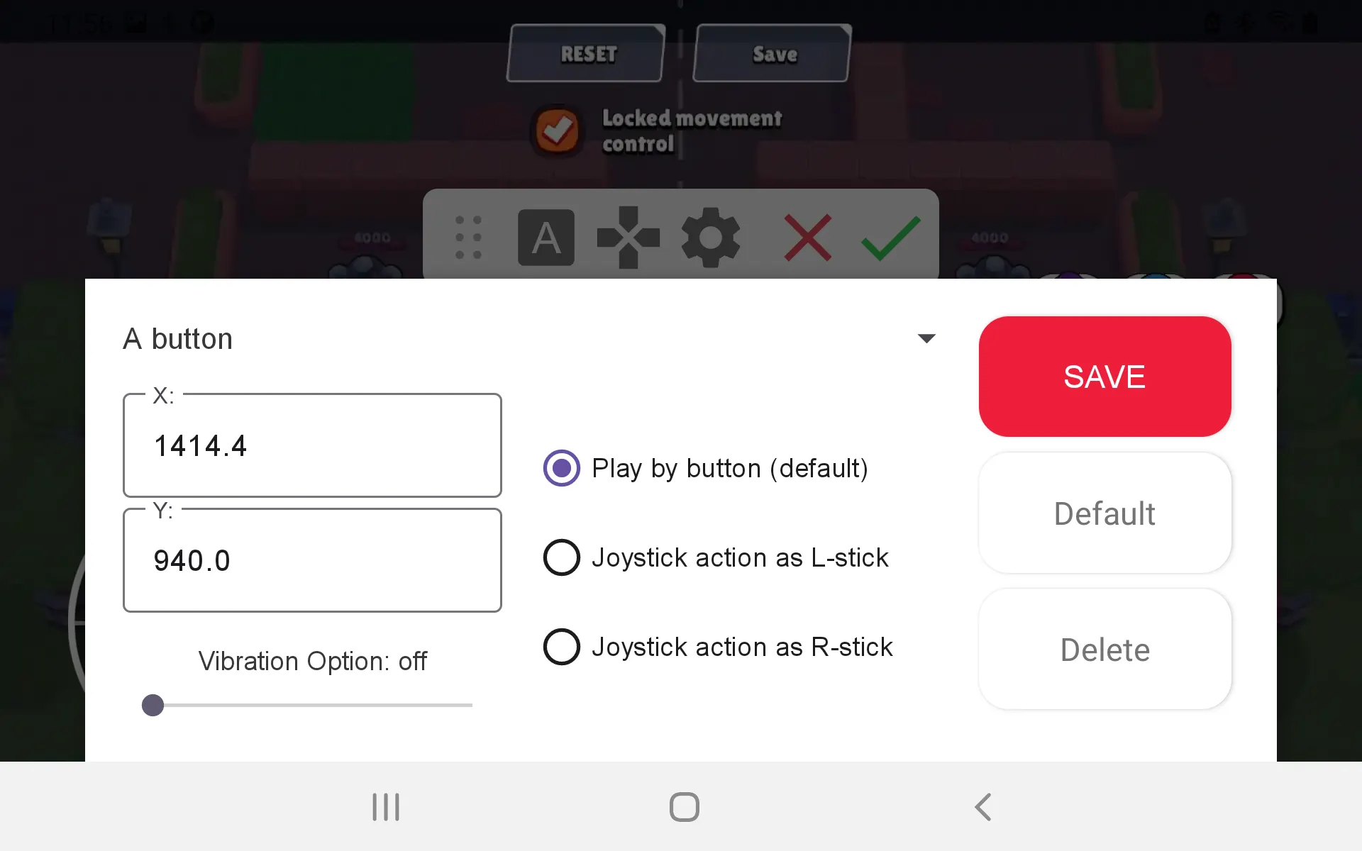Button vibration setting: The vibration on the game pad can be set to each button.