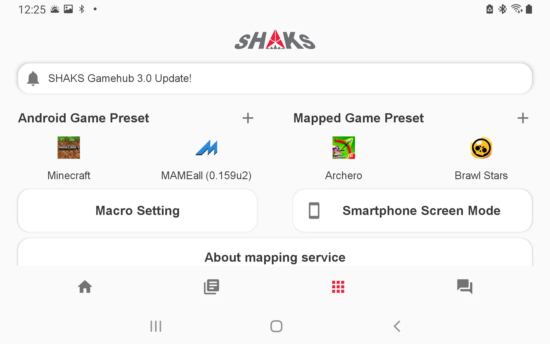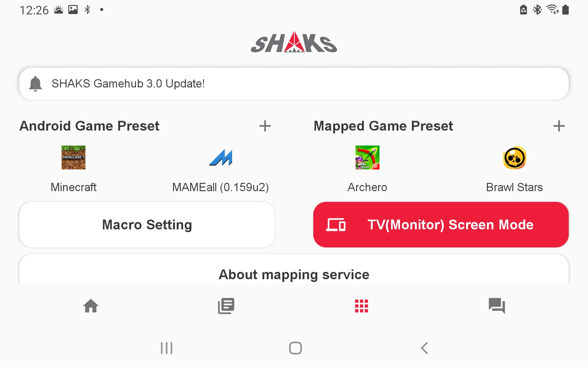 The SHAKS Gamehub app is designed to fully use the mapping functionality even in environments where smartphones are connected (mirroring) to the TV. Make sure you are in TV (monitor) screen mode when connecting to a TV.