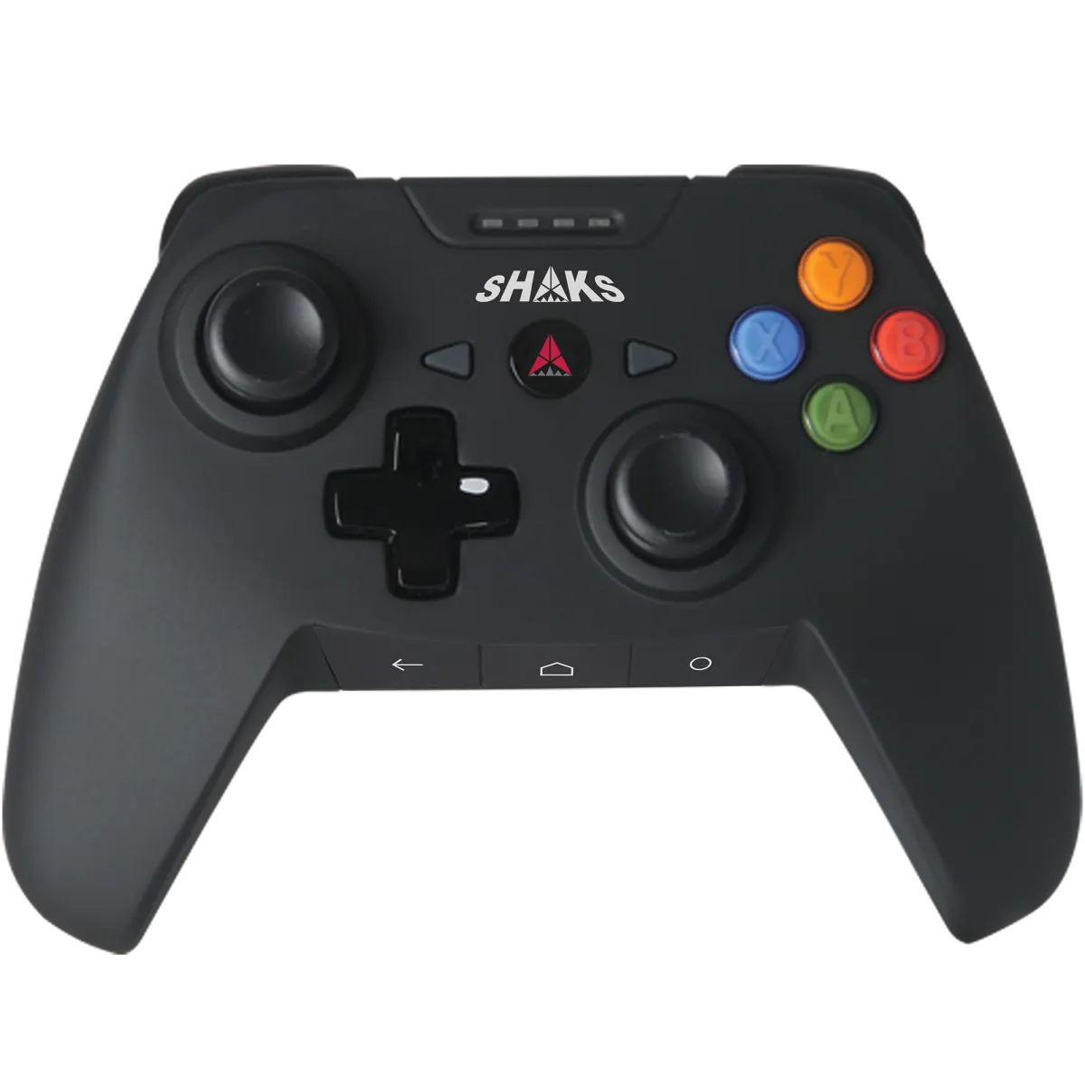 게임패드의 LED 색상이 초록색으로 되어있습니다. 전원 LED가 별도 존재하지 않으며 검정색 배경의 SHAKS 로고로 표시되어 있습니다.