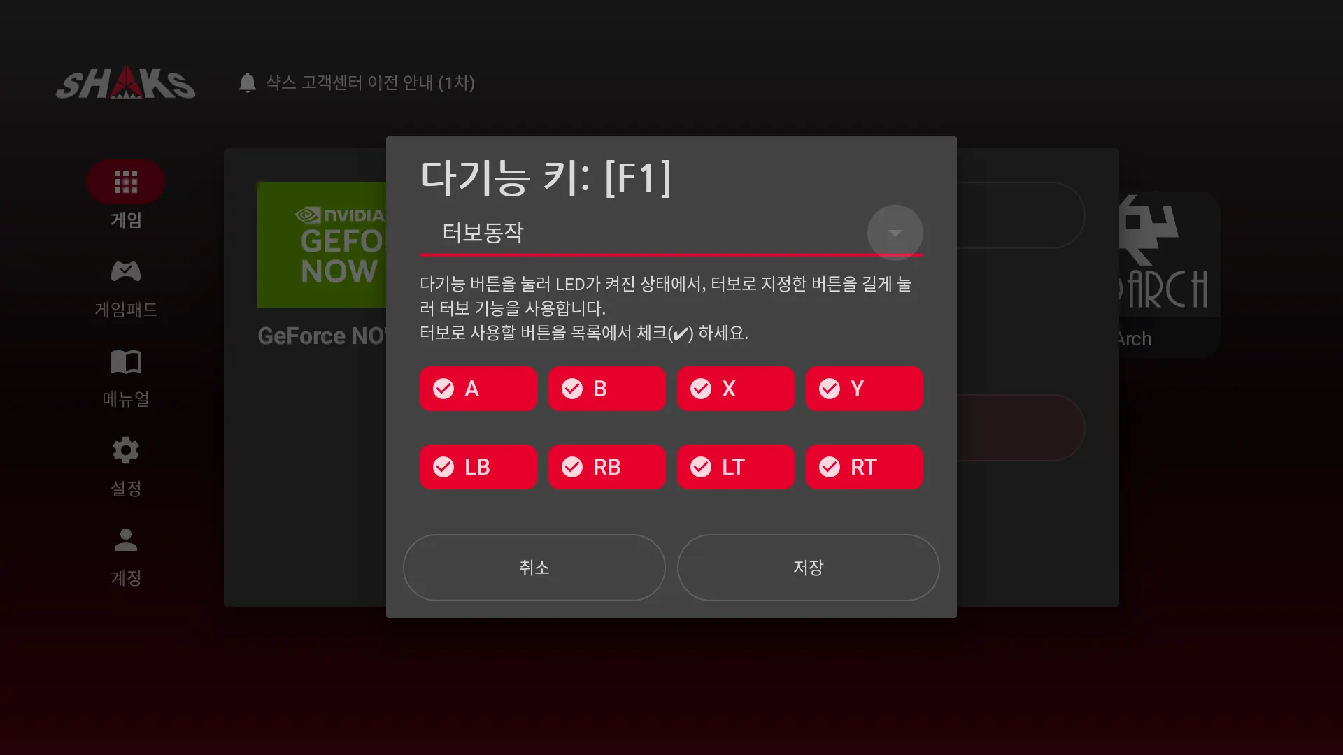 게임을 실행하면 설정한 정보 모두 그대로 적용하여 게임패드에 전달되고, 게임이 실행됩니다.