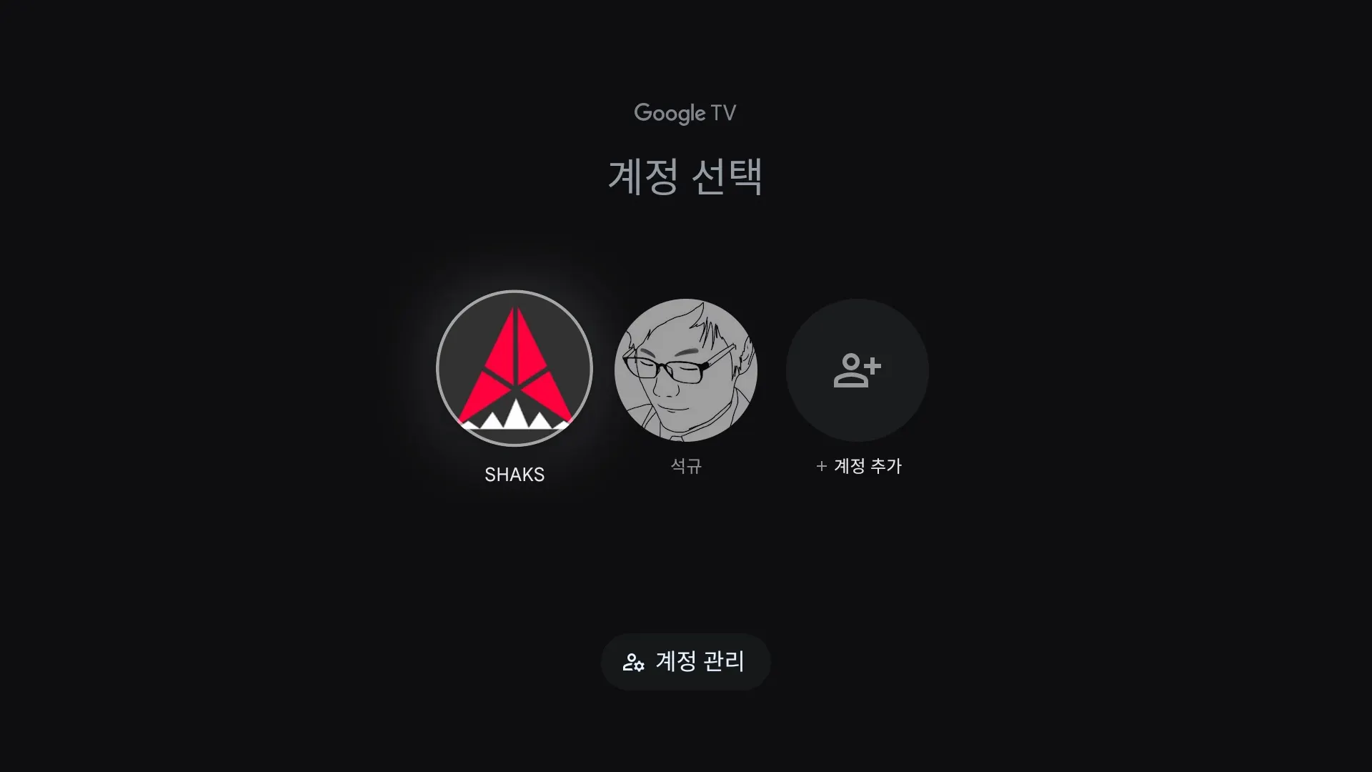 이때 Google TV에 계정을 추가하여 사용하시면 TV를 켤때나 원할 때 사용자 계정 전환 기능을 사용하시면 도움이 됩니다.