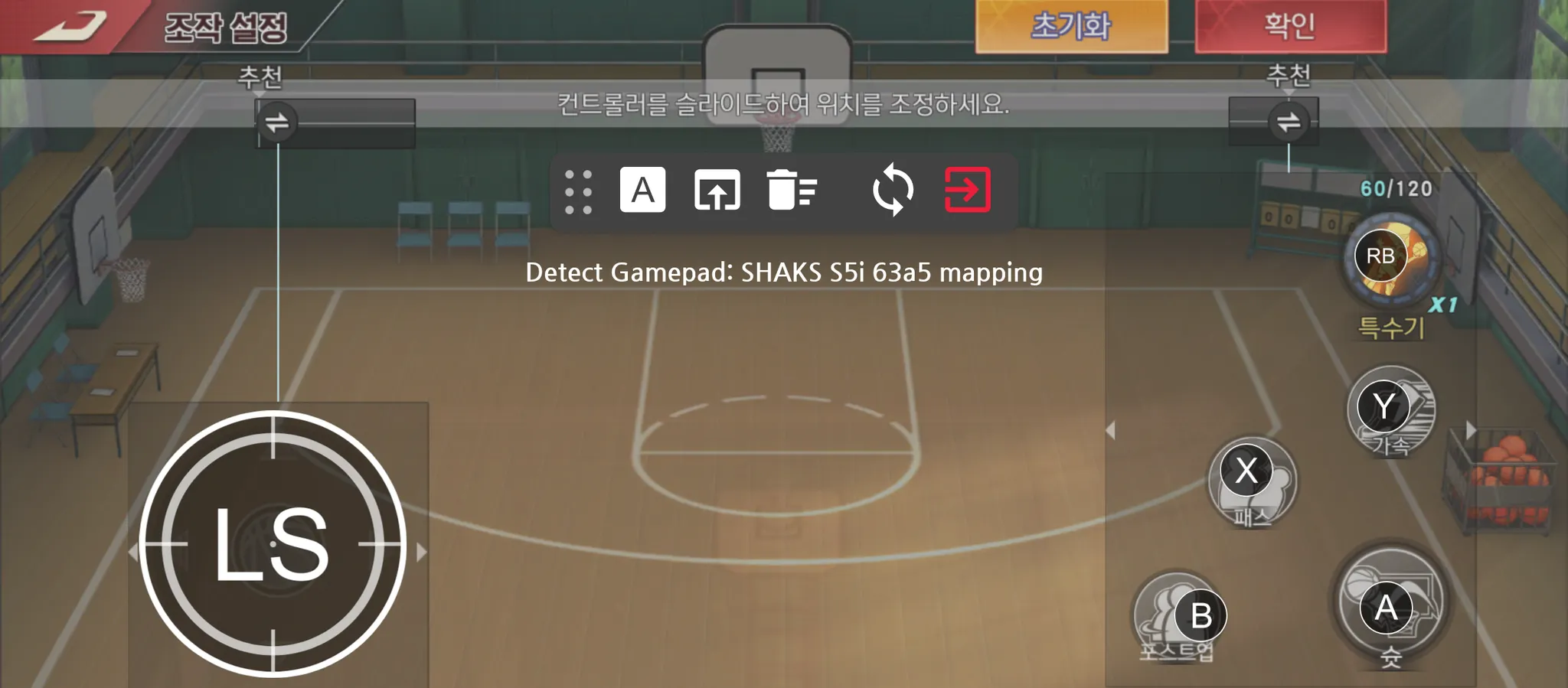 iOS 슬램덩크 M에서 자체적으로 게임패드 입력을 지원하기 때문에 문제없이 플레이 가능합니다. 만약 키 버튼이 마음에 들지 않는 경우에는
