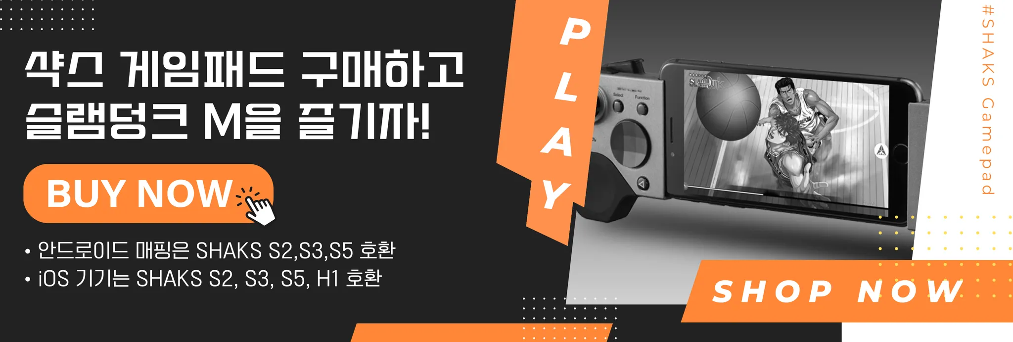 과거의 향수도 느끼며 즐길 수 있는 게임, 슬램덩크 M. 샥스 게임패드는 슬램덩크 M이 iOS와 안드로이드에서 모두 호환된다. 아래를 참고하여 샥스 게임패드로 플레이하고, 그 시절 사랑했던 선수들과 함께 코트를 뛰어보자!