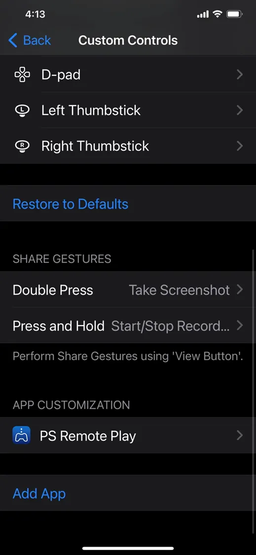 Paramètres → Général → Contrôleurs de jeu → Contrôles personnalisés.