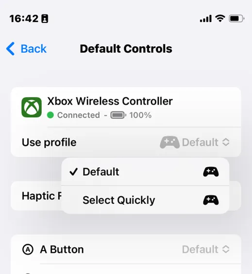 Sur iOS, le traitement de l'entrée du gamepad est presque le même, mais vous pouvez le modifier en fonction de vos préférences au niveau du système d'exploitation.