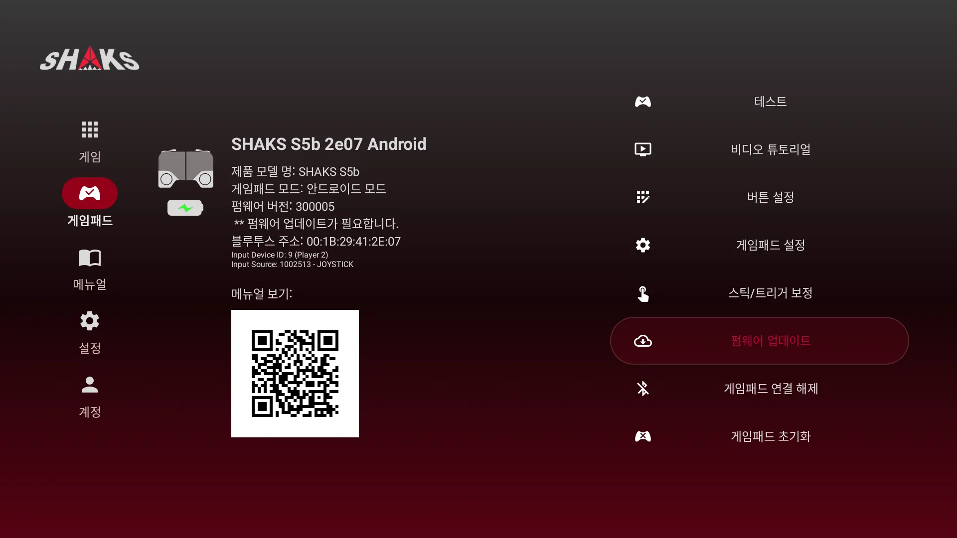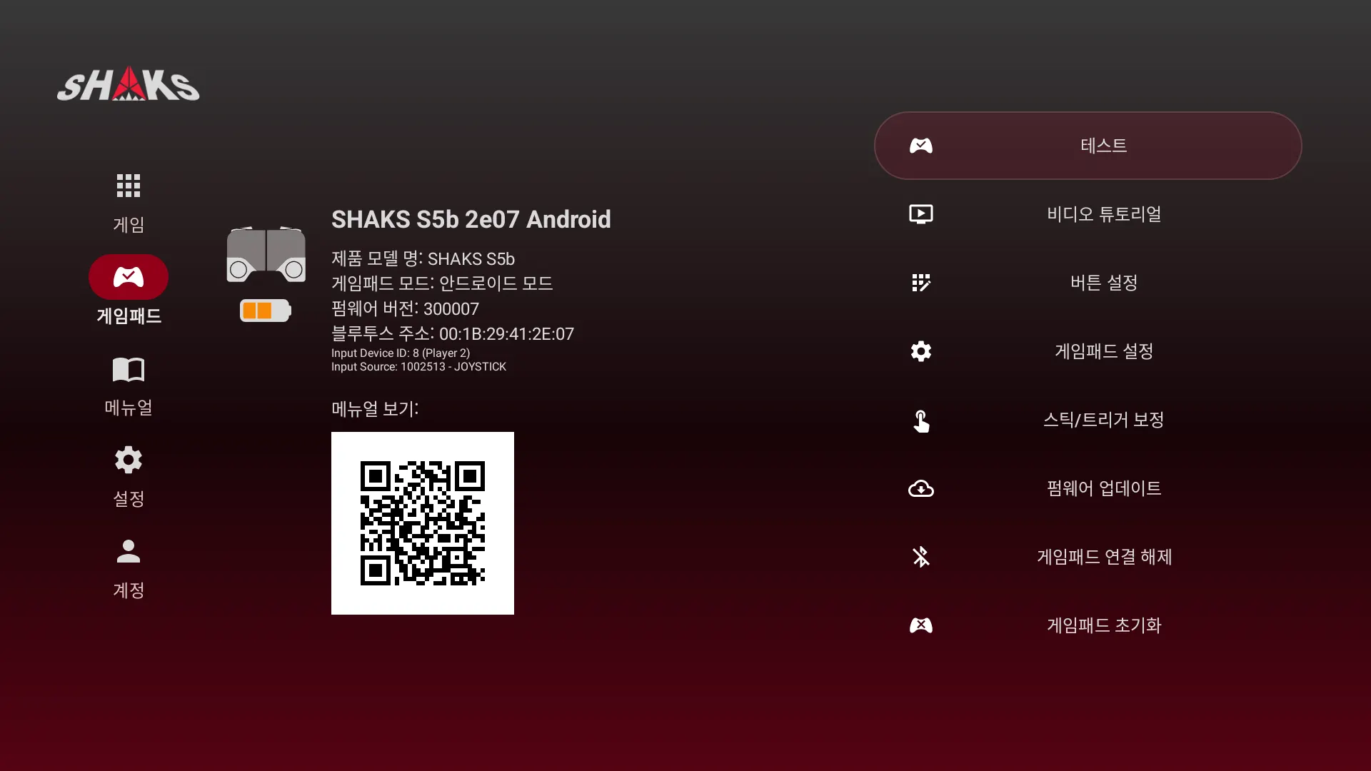 샥스 게임허브 (SHAKS Gamehub) 어플리케이션은 샥스 게임 컨트롤러로 더욱 실감나게 상황에 적합하게 다양한 기능을 제공합니다. 사용 OS 디바이스에 따라 각기 다른 앱이 있으며, 기능이 다릅니다. 이 메뉴얼은 안드로이드 계열 디바이스용으로 호환 게임 정보, 터보, 스나이퍼, 스틱 위치 재조정, 터치 게임 플레이를 위한 매핑 기능 등을 포함하고 있습니다.