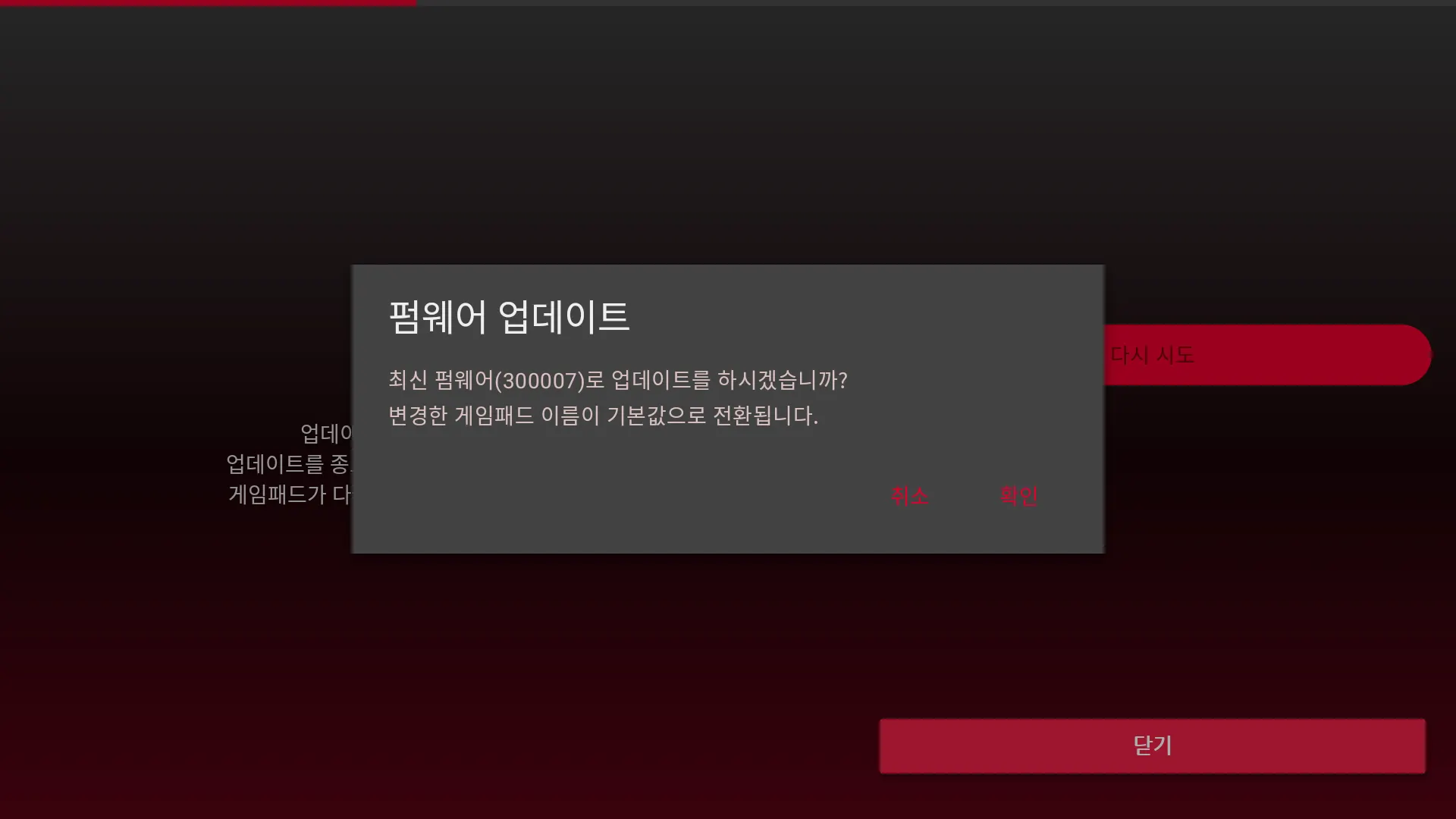 게임패드 펌웨어 버전이 낮은 경우