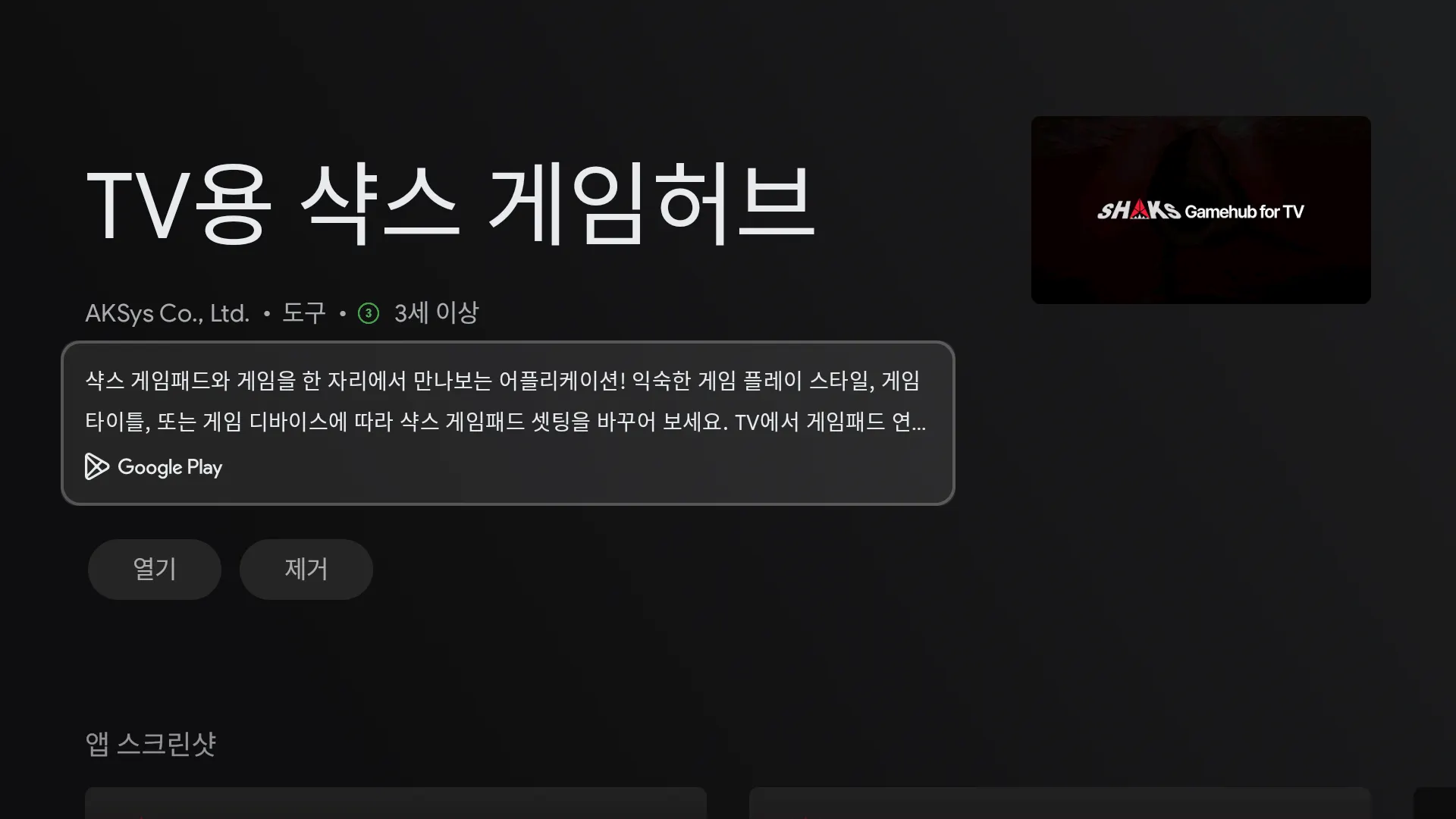 TV용 샥스 게임허브 앱이 등장하면 하단에 “더 많은 기기에 설치 가능” 이 나타납니다. 여기에 원하는 기기에 설치하시기 바랍니다.