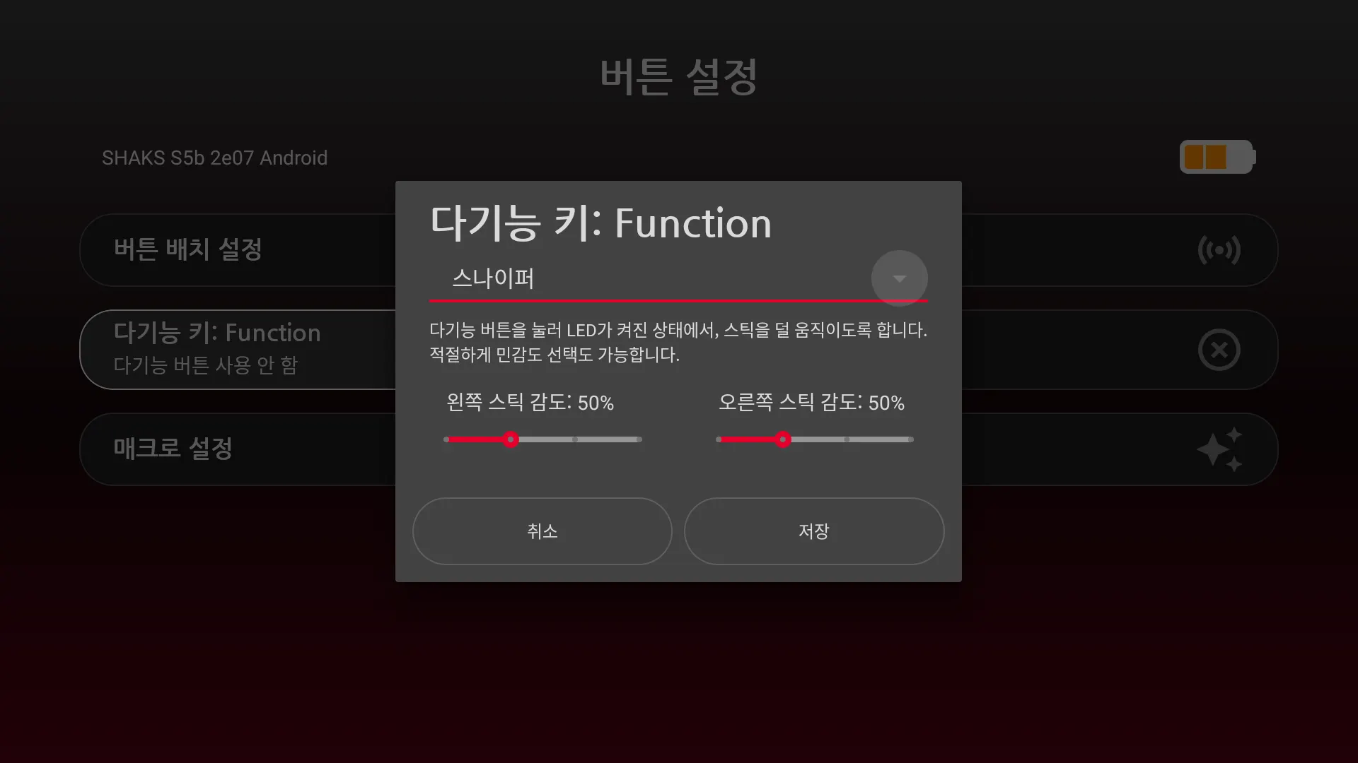 왼쪽/오른쪽 스틱을 보다 미세하게 제어할 때 사용하며, 민감도를 플레이 스타일에 맞추어 조정하시면 됩니다.