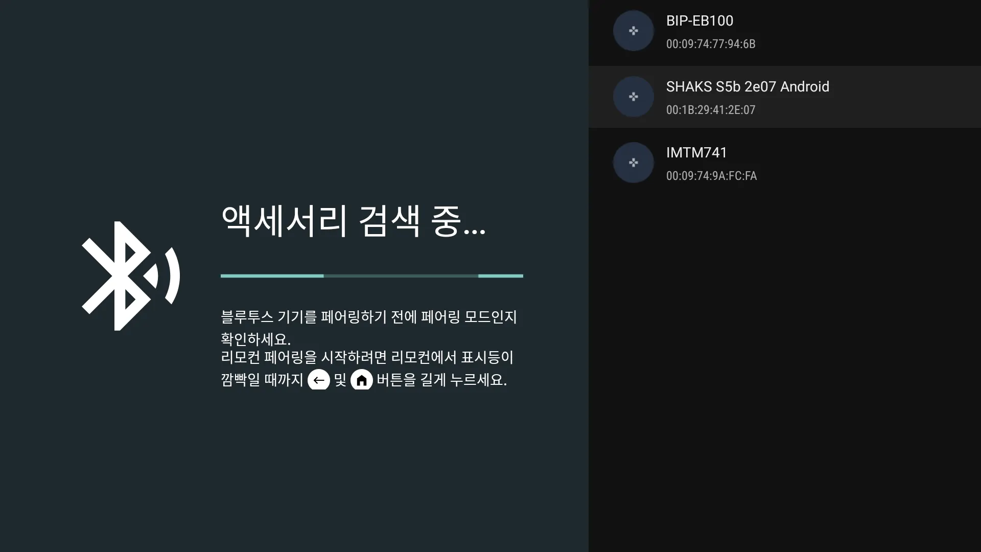 블루투스 기기 중에서 SHAKS 게임패드를 선택하여 연결합니다.