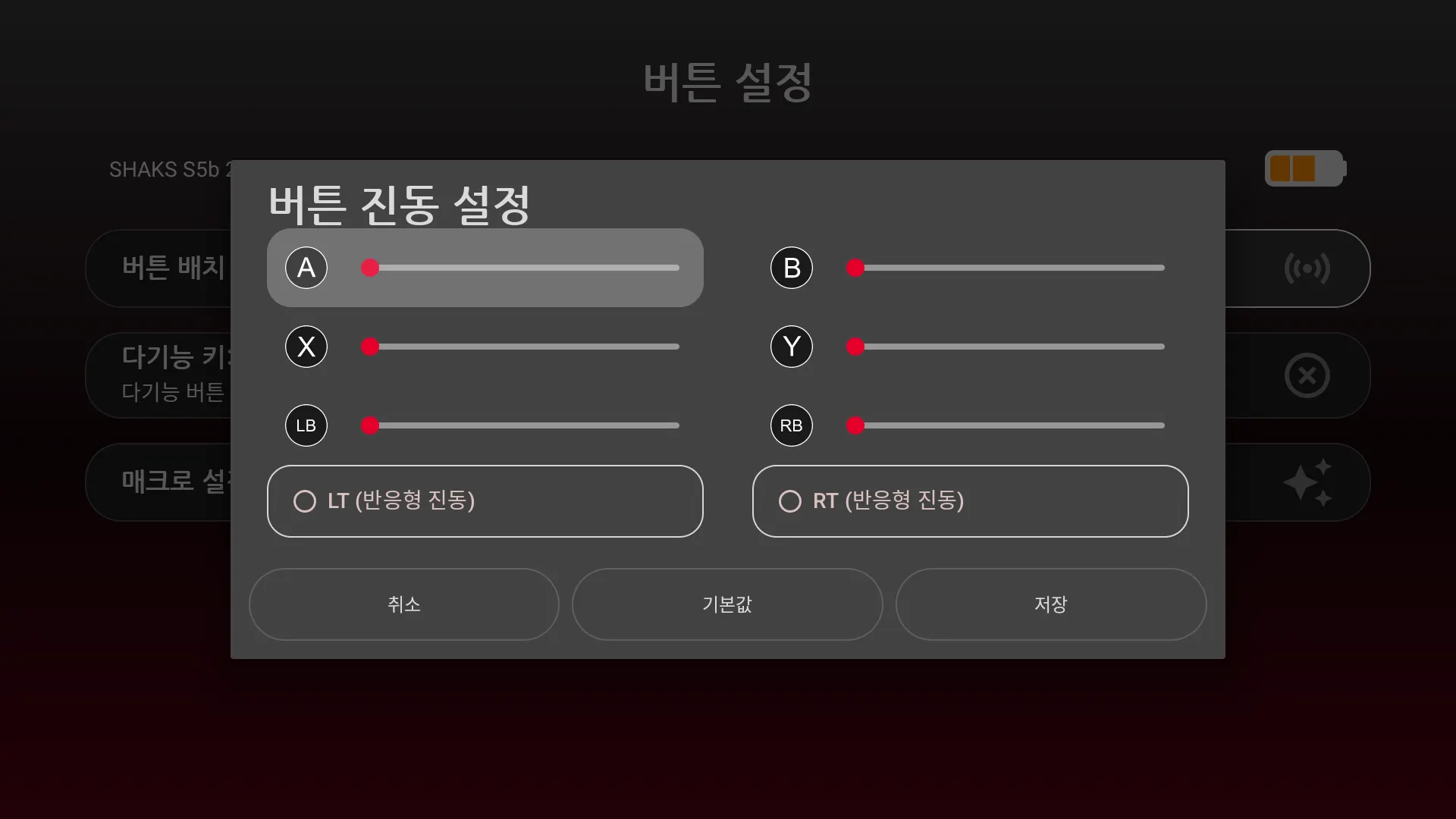 LT, RT 버튼을 다른 버튼으로 설정하거나, 다른 키를 LT, RT 버튼으로 적용했을 때는 모두 일반 버튼처럼 작동합니다.