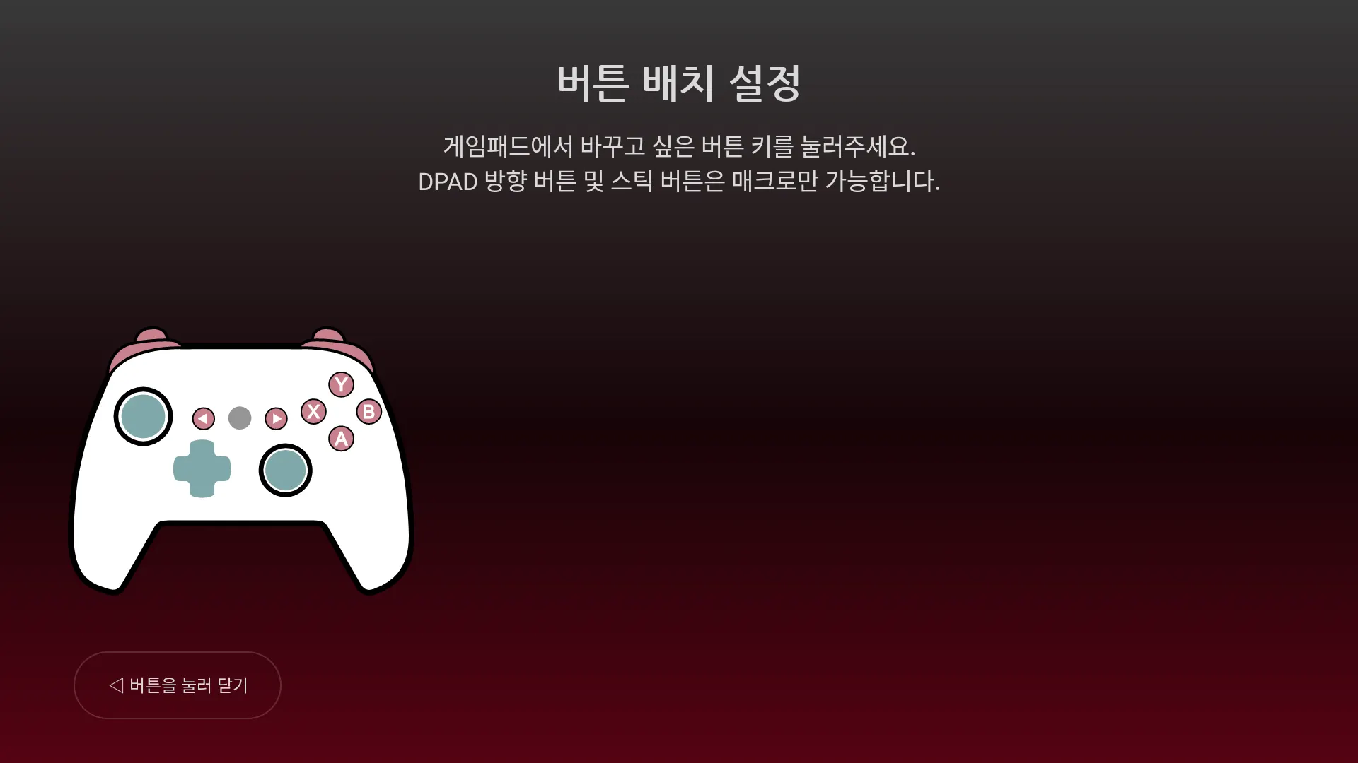버튼 설정 → 게임패드의 버튼을 설정할 수 있습니다.