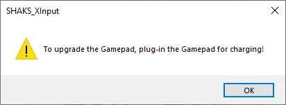 ゲームパッドが充電状態でない場合は、以下の警告ウィンドウが表示されます。