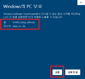 初めて実行する場合は、次の警告ウィンドウが表示されることがあります。 SHAKSアプリは公式の証明書で認証されていますが、Microsoftのアプリストアからダウンロードされていないアプリには、以下の警告ウィンドウが表示されることがあります。内容を確認して「次へ」ボタンを選択してください。