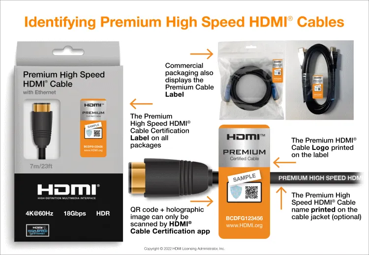 프리미엄 인증을 받은 케이블(Premium Certified Cable)은 4K 화면에서 60프레임을 지원하며, HDR을 지원합니다.