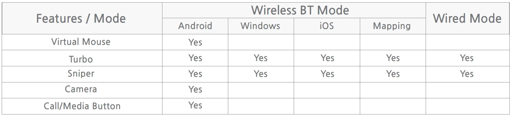 Note) Please select the exact mode matching to your device for 100% compatibility according to each protocol. Otherwise, some feature is not supported fully although it looks like connected!