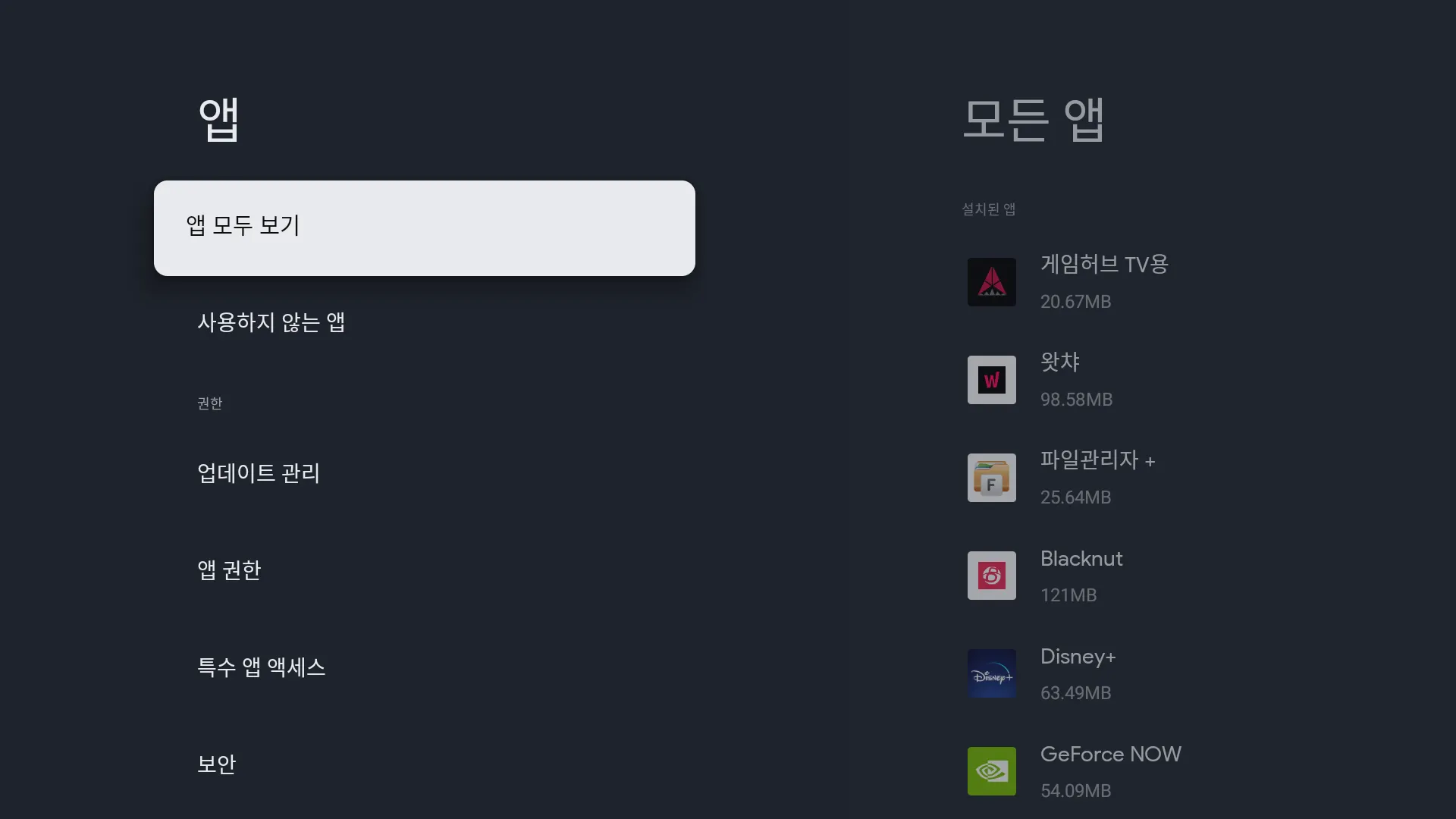 설정 메뉴에서 ‘앱’ → 모든 앱을 선택합니다.