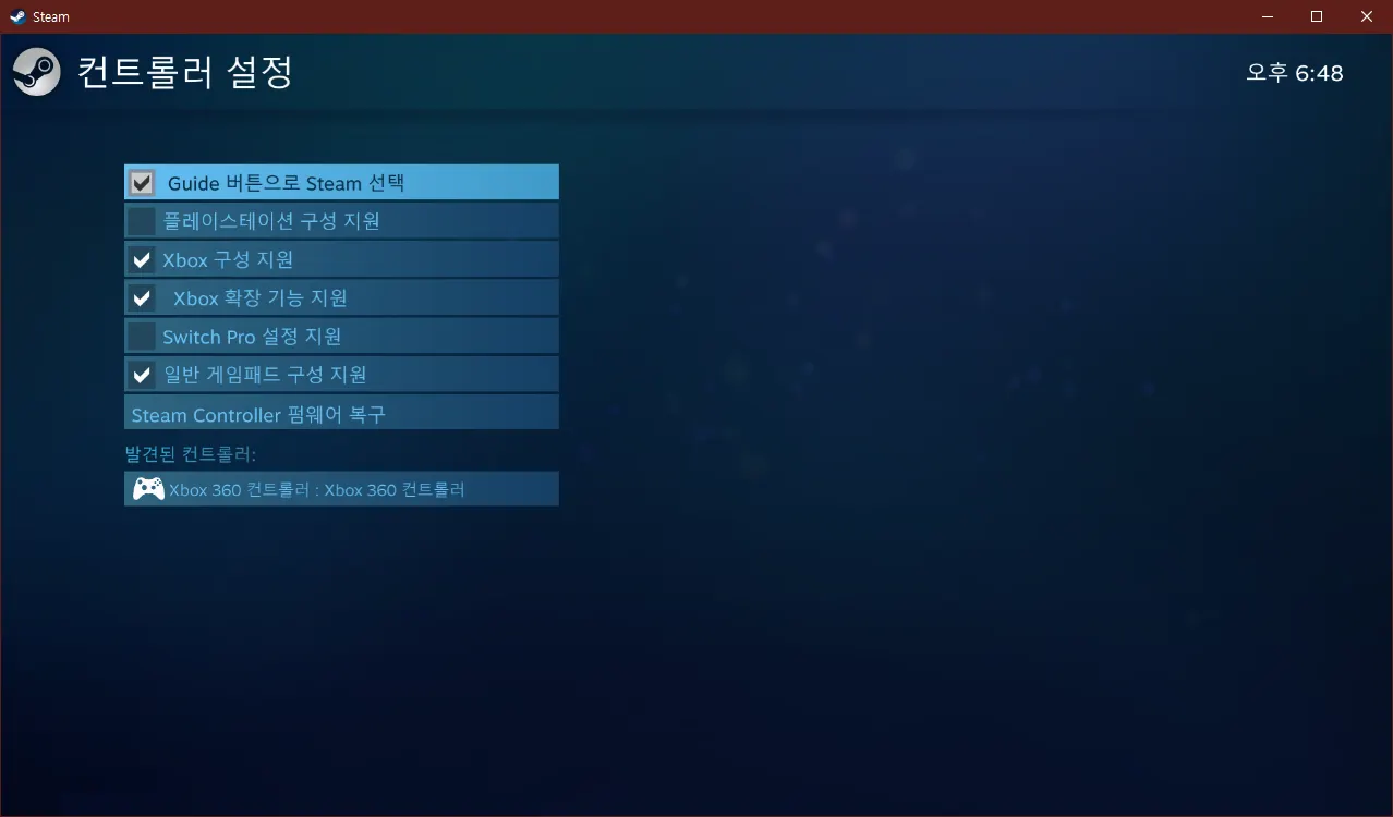 Steam 설정 → 컨트롤러 → 일반 컨트롤러 설정 메뉴를 들어옵니다.