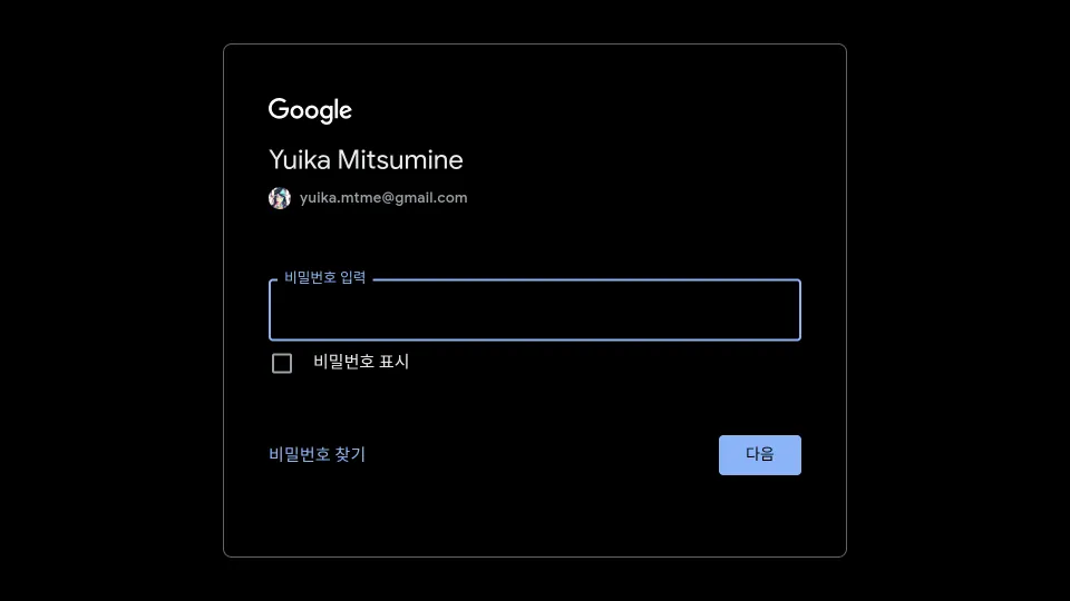 로그인 과정이 필요할 수 있습니다. Google 계정 암호를 직접 입력해야 합니다.