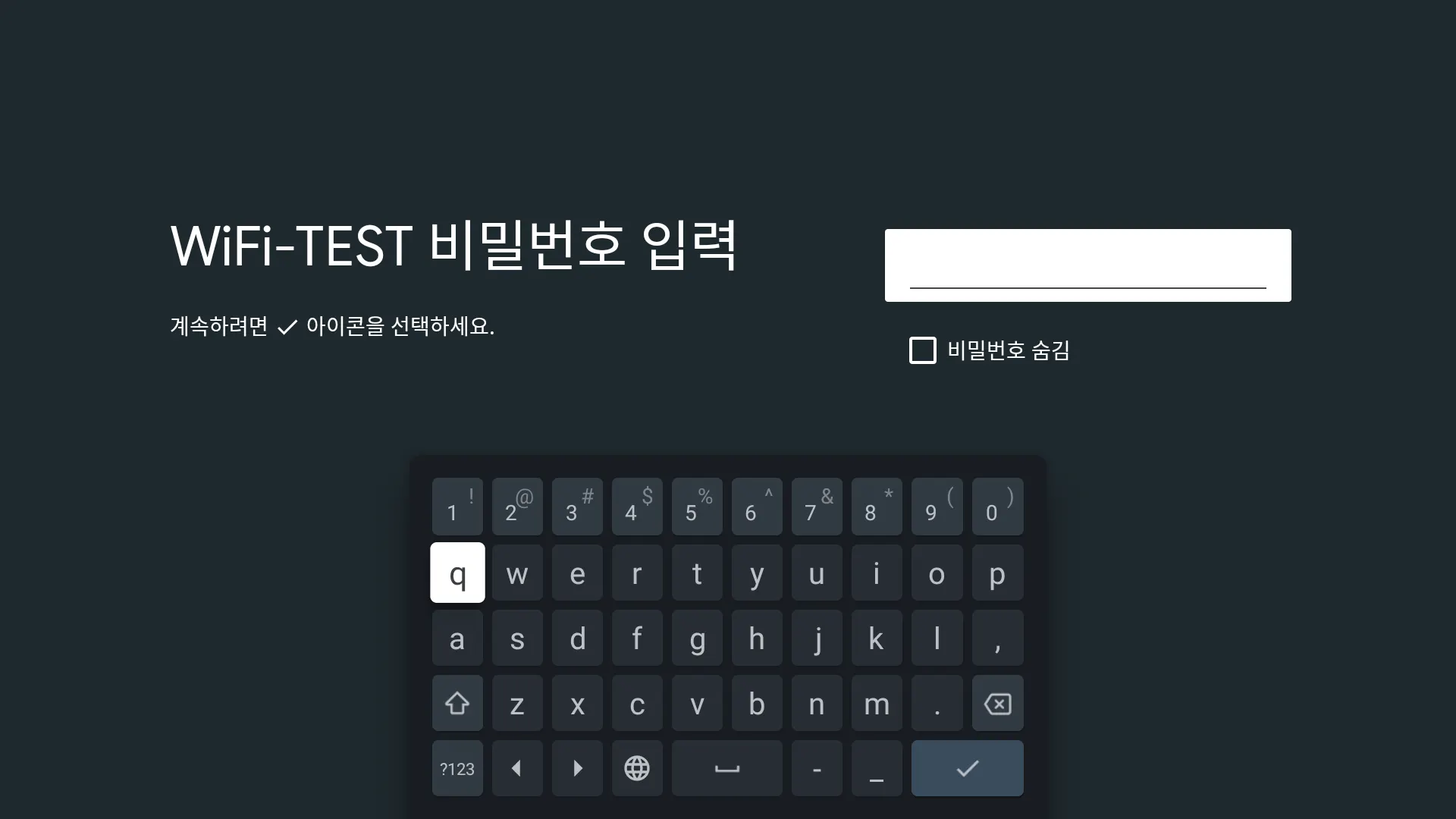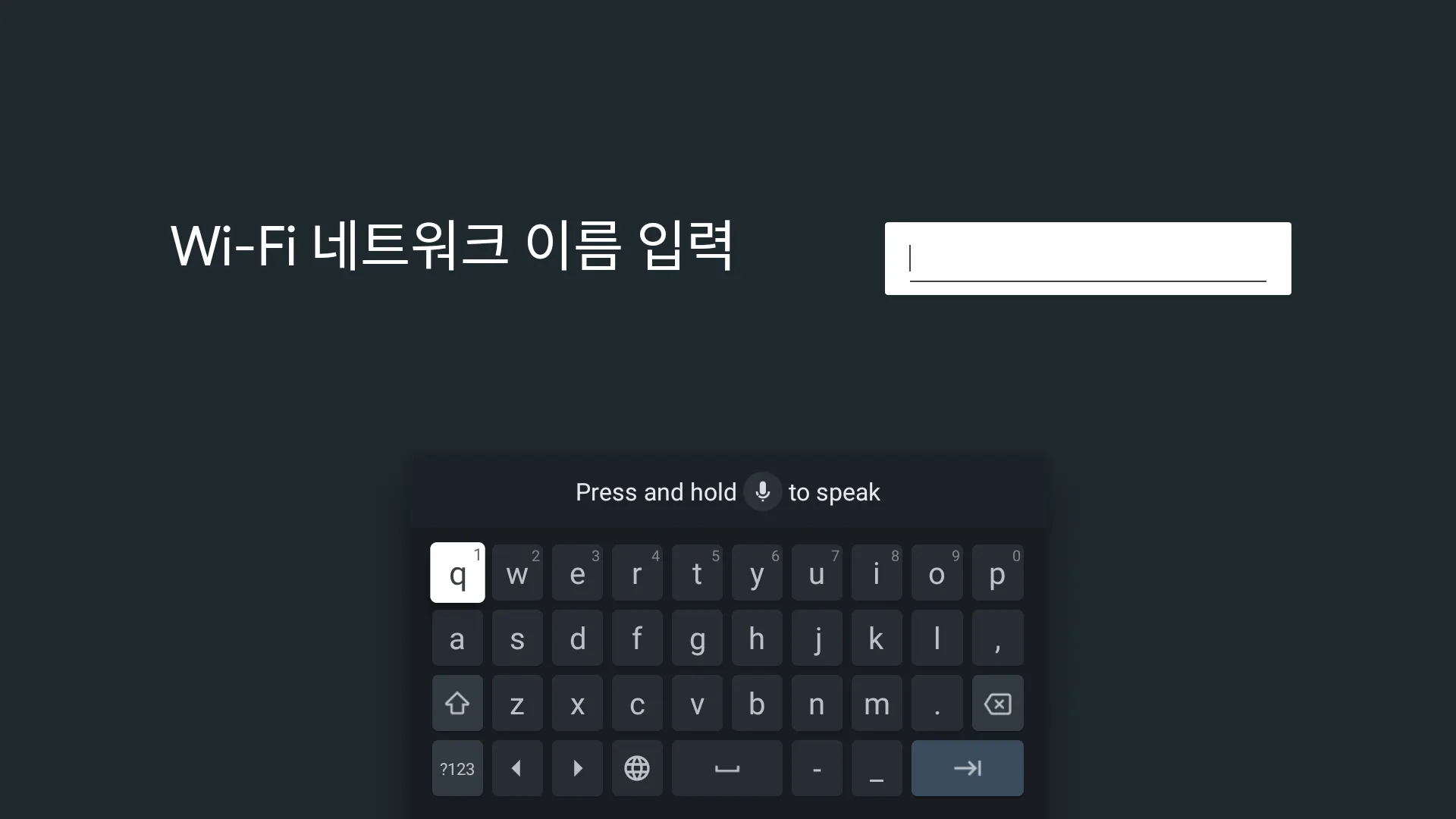 자판을 입력하여 Wi-Fi 이름을 입력합니다.
