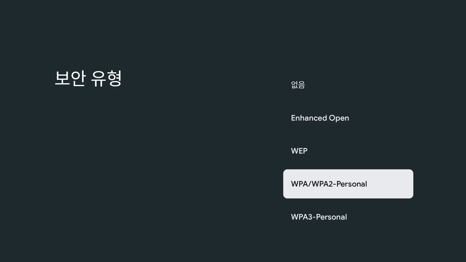 암호화 형식을 선택합니다. (보통은 WPA/WPA2-Personal 입니다.)